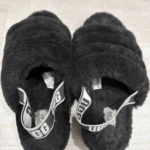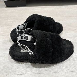 UGG Fluff Yeah Ruby Black Slippers- Size 9