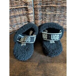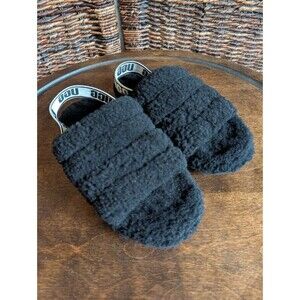 UGG Fluff Yeah Shearling Slingback Slides Sandals Girl's 2 Black Slippers Kids