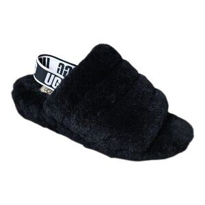 UGG Fluff Yeah Slide Black Slippers Shearling Slingback Slip On Shoe Sandals Size 9