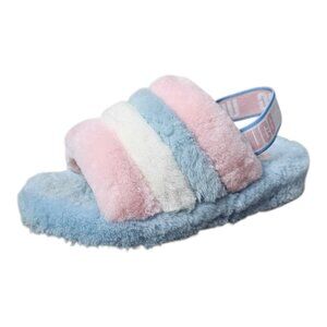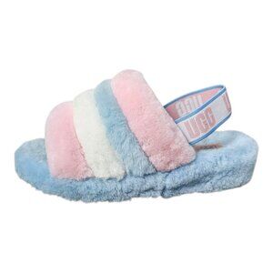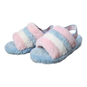 UGG Fluff Yeah Slide Blue And Pink Slippers Shearling Slingback Slip On Sandals Size 9