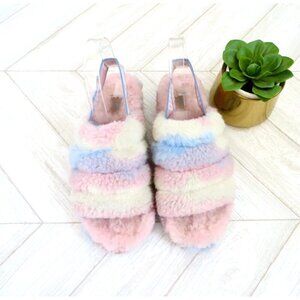 UGG Fluff Yeah Slide Cali Collage Pride Stripes Pastel Rainbow US 7
