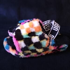 UGG Fluff Yeah Slide Check Checkerboard Plush Strap Back Size 5 Sandals Slides
