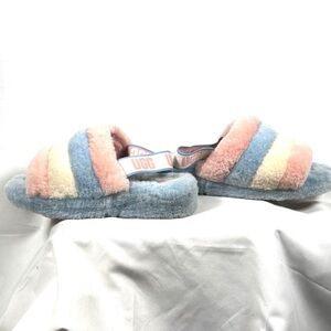 UGG Fluff Yeah Slide Rainbow Shearling Sandals Pastel Cozycore Size 9