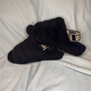 UGG Fluff Yeah Slide Sandals Black Fuzzy Shearling Slippers Size 7
