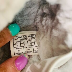 Cozy UGG Fluff Yeah Slide Sandals in women’s size 8. Features plush gray sheepskin with quilted strap detailing and an elastic UGG logo slingback strap for a secure fit. Ultra-soft and versatile, these can be worn indoors as slippers or styled outdoors with casual, loungewear, or cottagecore-inspired looks.