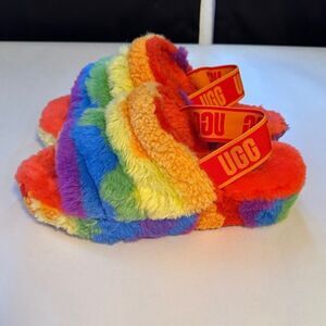 UGG Fluff Yeah Slide Sandel Slip On Rainbow Pride Colorful Size 7 Shearling
