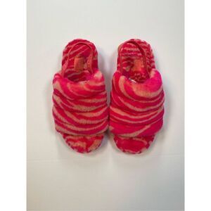 UGG Fluff Yeah Slide Zebra Rock Rose Pink Slingback Slipper Sandal Size US 6 EUC