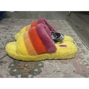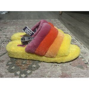 UGG Fluff Yeah Slides Slippers In Rainbow Yellow Size 12