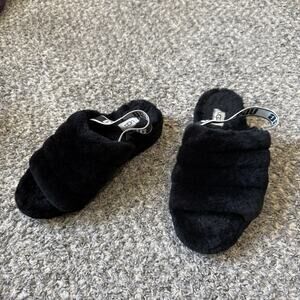 UGG Fluff Yeah Womens Size 9 Black Casual Sheepskin Platform Slide Slippers EUC