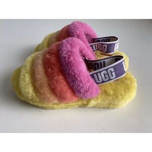 UGG Fluff Yeah Women’s Sz 7 Slipper Slides Yellow Orange Pink 1097169 NEW