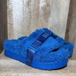 Soft and stylish blue slides by UGG. Ideal for cozy wear.