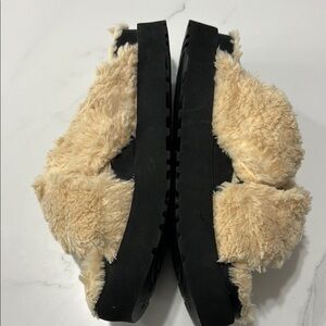 Keep your feet cozy and stylish with these UGG fluffy cream sandals. Perfect for casual outings.