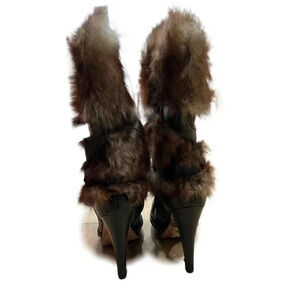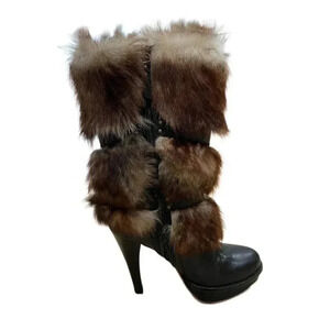 Gently used Ugg Foxley black leather boots with fur. Minor scuffs