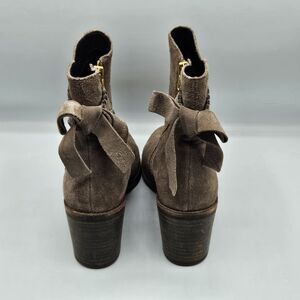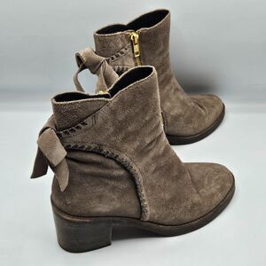 UGG Fraise Whipstitch Suede Ankle Boots Taupe Bow Back Block Heel Booties Size 8