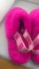 Vibrant fuchsia slippers with plush texture. Features UGG branding on the strap. Size 4!