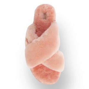 UGG Fuzzette Beverly Pink Criss Cross Strap Womens Fur Slippers Size 5