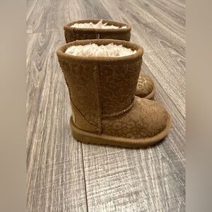 UGG GIRLS CLASSIC II GLITTER LEOPARD Cheetah BOOT SIZE 6 KIDS CHESNUT