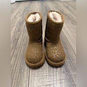 UGG GIRLS CLASSIC II GLITTER LEOPARD Cheetah BOOT SIZE 6 KIDS CHESNUT