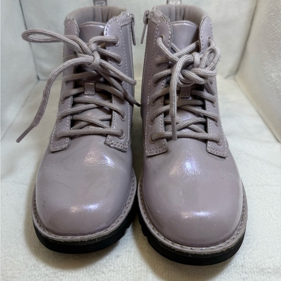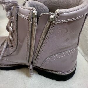 Stylish shiny lavender boots with lace-up design. Perfect for a trendy look. SIZE 2