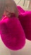 Bright pink fluffy slides by UGG. Ideal for comfort and style.