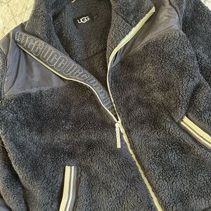 UGG GLADYS SPORTY SHERPA JACKET BLACK W/ PINK TRIM FULL ZIP POCKETS WOMEN Large