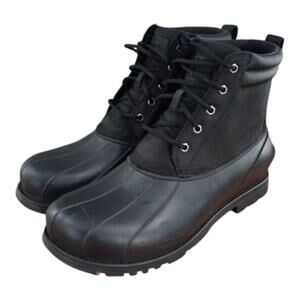 UGG Gatson Mid Shoes Mens Size 10 Black Leather Rubber Lace Up Mid Rain Boots