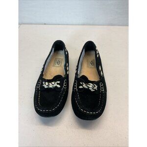 UGG Genoa Moccasin Shoes Women's 6 Black Suede Shearling Driving Loafer Slippers