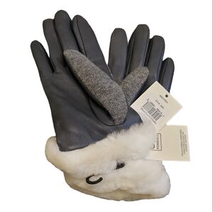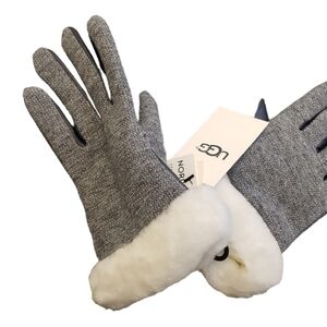 UGG Genuine Shearling Lined Leather Paneled Gloves Light Grey
