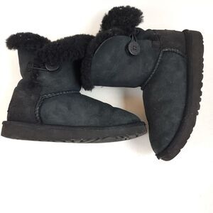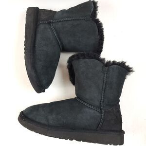 UGG Girls Bailey Button II Mini Boots Black Sheepskin Youth Size 2 #05006076