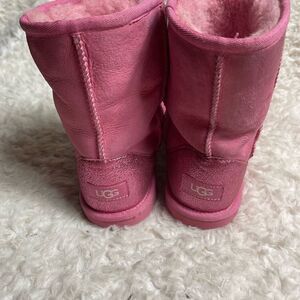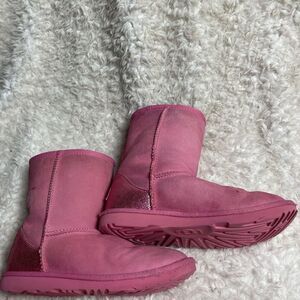 UGG Girl's Classic II Glitz pink leather suede Wool Lined Pull-On Boots SZ5 Pre owned in good used condition signs of wear on the suede has some transfer marks and the trim around the toe area.see all pictures any questions please message.