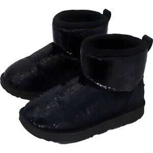 UGG Girls Classic Mini Mirror Ball Black Boot - 2 Little Kid