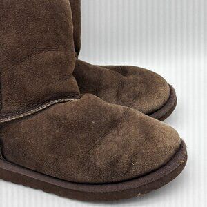 UGG Girls Classic Short Brown Suede Shearling Lined Winter Boots Size 3 GUC