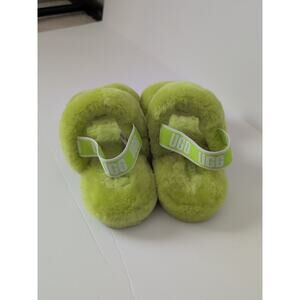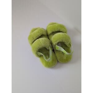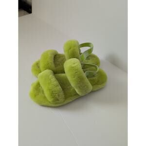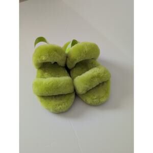Brand new ugg fluffy faux fur slippers neon green color brand new without the box but does have sharpie marker on bottom of sole.