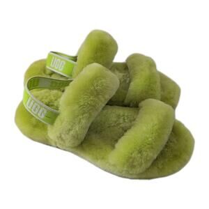 UGG Girl's Lamb Fluff Yeah Slide Slippers Lime Green 1115752K Size 4 NWOB