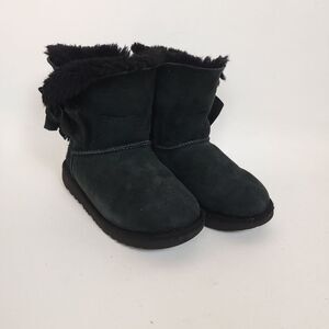 SEO Keywords: UGG, Mini Bailey Bow II, Girls Youth Boots, Sheepskin, Winter Shoes, Water Resistant, Cozy, Casual, Black UGGs, Size 2