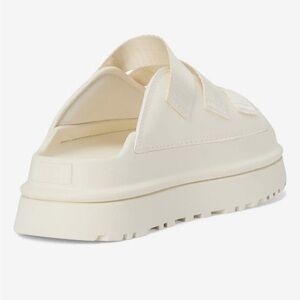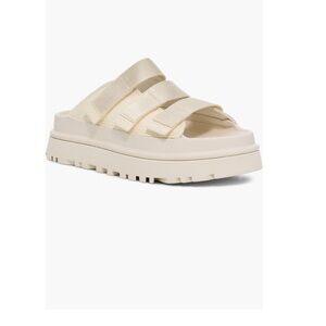 Chic cream slide sandals with wide straps. Ideal for everyday wear.