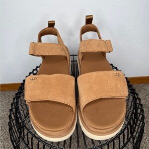 UGG Goldenstar Chestnut Suede Platform Sandals Size 12