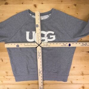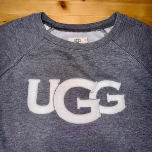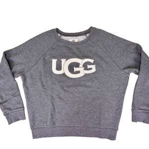 Keywords: UGG, crewneck sweatshirt, logo pullover, gray sweater, cozy lounge, casual wear, women's medium