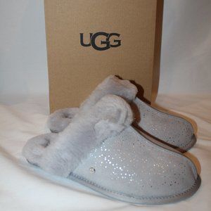 Cozy gray slippers with a fluffy lining. Sparkle detail adds elegance. Perfect for comfort and style.