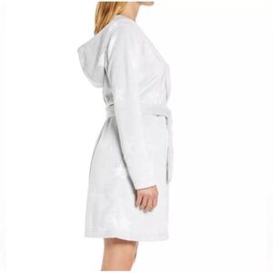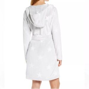 Cozy UGG robe with a star pattern. Soft gray color. Perfect for lounging.