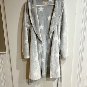 Cozy robe with star pattern. Soft and plush material. Perfect for lounging.