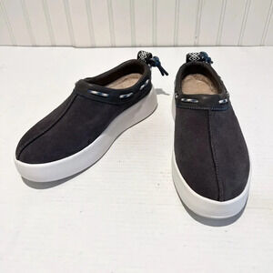 UGG Gray Suede Shearling Lined Platform Boat Shoes Preppy Slip On Loafers 7 NWOB