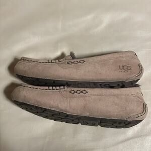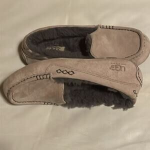 Classic Gray Suede Shearling Lined Slippers with Rubber Sole.