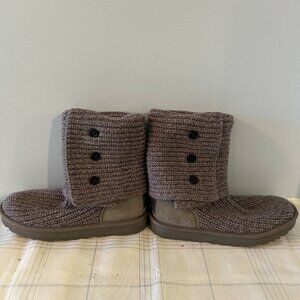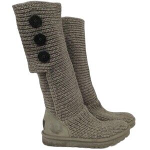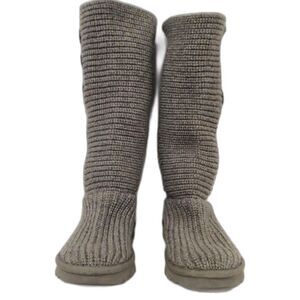 UGG Women's Grey Knit Side Button Boots in a size 7. 15" high shaft,, which can be folded to a mid-calf fit. Excellent condition.