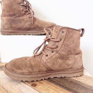 Chestnut brown color suede boots with shearling lining. In good condition with light wear. Men’s size 8