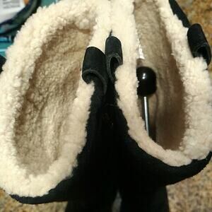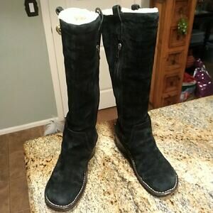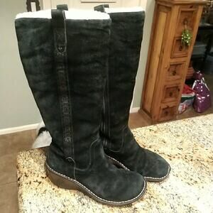 UGG Hartley Knee High Boots Black Suede & Sheep Skin Wedge S/N 3342 Size 7 M