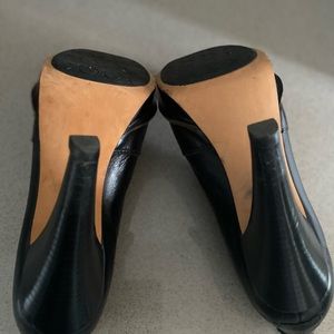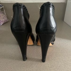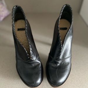 Ugg Black Leather BOOTIES. Like New. Size 7. Small Platforms. Heels 4.75”. Excellent Condition.