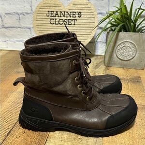UGG Hilgard Men's 10.5 Brown Leather Ankle Shearling Vibram Snow Boot