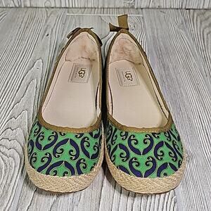 UGG Indah Marrakech Green Blue Cotton Flats Womens Size 7 NEW