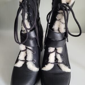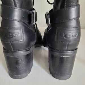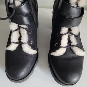 UGG "Ingrid" Black Leather Shearling Lug Soled Lace-Up Moto Combat Biker Boots-7
